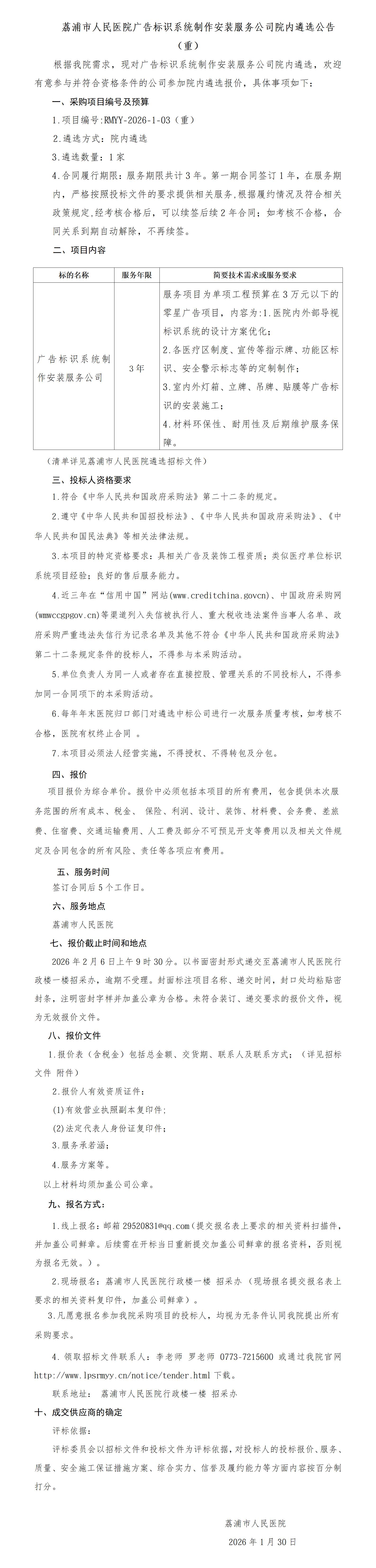 广告标识系统制作安装服务公司院内遴选公告(重)
