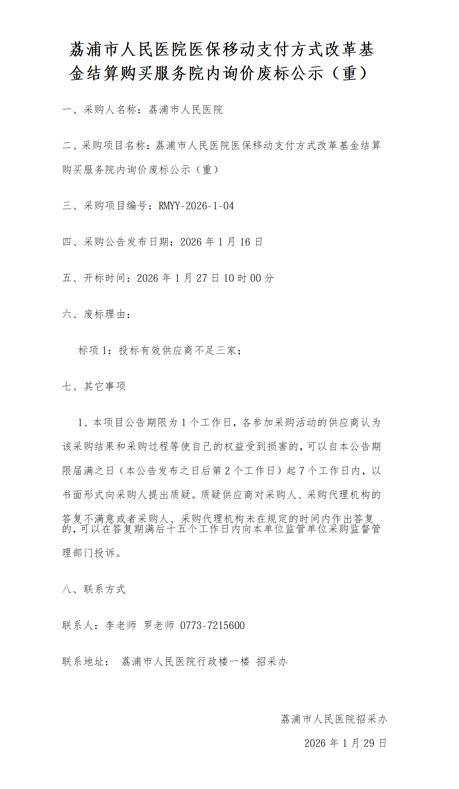 医保移动支付方式改革基金结算购买服务院内询价废标公示(重)