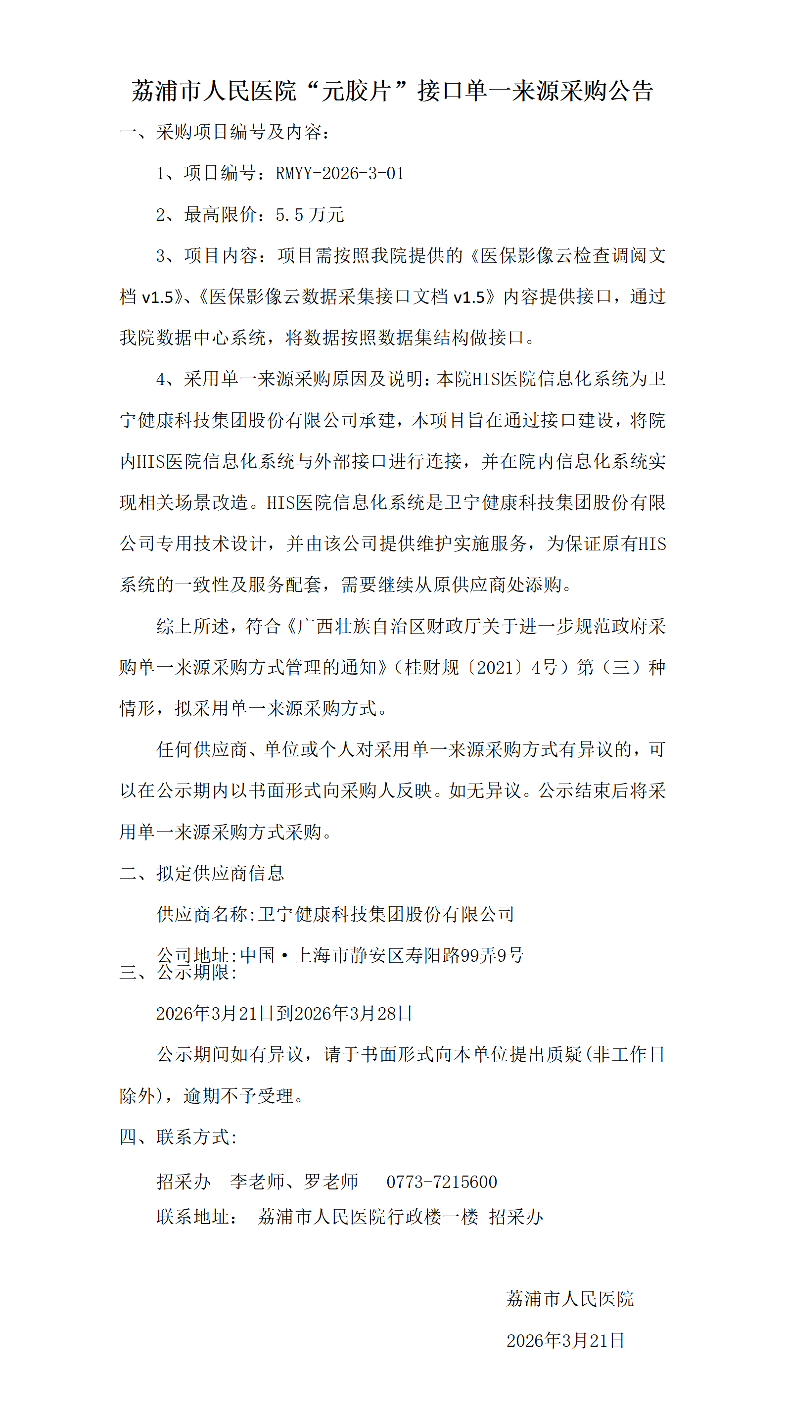 “元胶片”接口单一来源采购公告